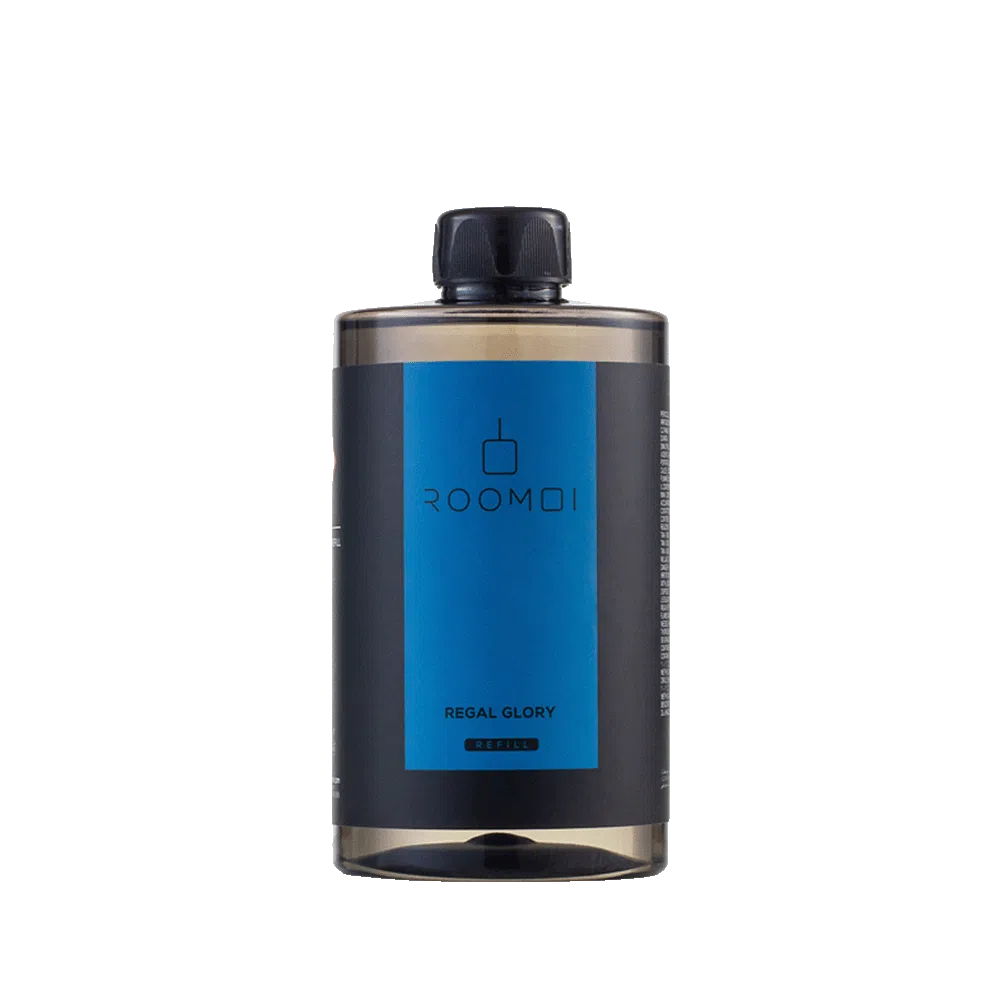 ROOMOI namų kvapų papildymas REGAL GLORY – tai pulsuojanti ir gyvybinga energija, pasirengusi pasinerti į jūsų erdvę ir apsvaigti aplinką su veržlia ir galinga gamtos gaiva ir švara.